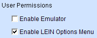 The LEIN Admin Options window from the Configure menu contains administration configuration options. These options are only available to users who have Client Administrator rights for Talon.