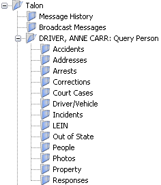For each query requested, a folder is created on the left hand side of the screen. Any responses for the selected query are organized into folders according to the type of information it contains. For example, an Addresses folder may be created and will list all the addresses returned for a specific person query.
