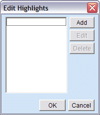Click [OK] to exit and save your highlights, or click [Add] to create a new highlight, [Edit] to change an existing definition, or [Delete] to remove a highlight.