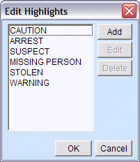 When you first select Edit Highlights, a list of your configured highlights is displayed. From this window you can: