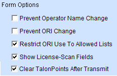 Allows the end user to use a scanner to scan the license on a magnetic strip Driver License/Identification card to fill in fields 11: and 7: on forms that require the operator's license number. NOTE: The Scan License option on forms will only work if the magnetic strip on the license follows the AAMVA National Standard for the Driver License/Identification Card. Michigan driver's license follow this standard. |