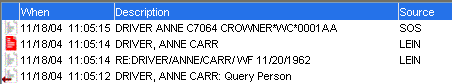 A scroll bar is displayed if there are more messages than can fit in the list area. New messages are displayed at the end of the list. You can also use the Arrow keys to scroll through the list of messages. To view a message when using the arrow keys to scroll through them, press the Space key to select the message. |