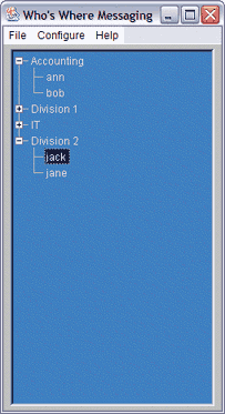 The main window for Who's Where Messaging is the User List. This window displays all the on-line users who are available to receive messages.
